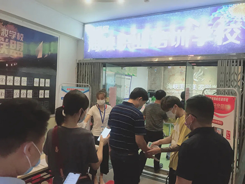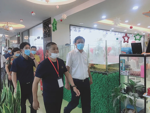 (疫情期間對領(lǐng)導(dǎo)一行人進(jìn)行體溫檢測)